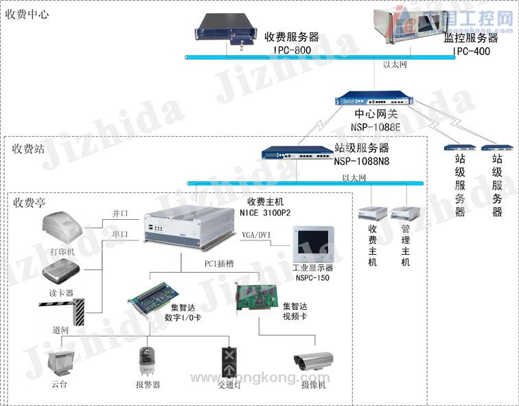 交通運(yùn)輸業(yè)是國民經(jīng)濟(jì)中具有全局性和先導(dǎo)性的基礎(chǔ)產(chǎn)業(yè)。高速公路作為現(xiàn)代化交通基礎(chǔ)設(shè)施,以其通行能力大、行車速度高的顯著特點(diǎn),成為適應(yīng)現(xiàn)代化產(chǎn)業(yè)結(jié)構(gòu)發(fā)展需要的骨干運(yùn)輸方式和重要運(yùn)輸通道。高速公路收費(fèi)系統(tǒng)是對道路的使用者按既定的費(fèi)率征收通行費(fèi),回收道路建設(shè)投資的主要方式。 下面以一條高速公路為例,集智達(dá)產(chǎn)品在高速公路收費(fèi)系統(tǒng)中的應(yīng)用。